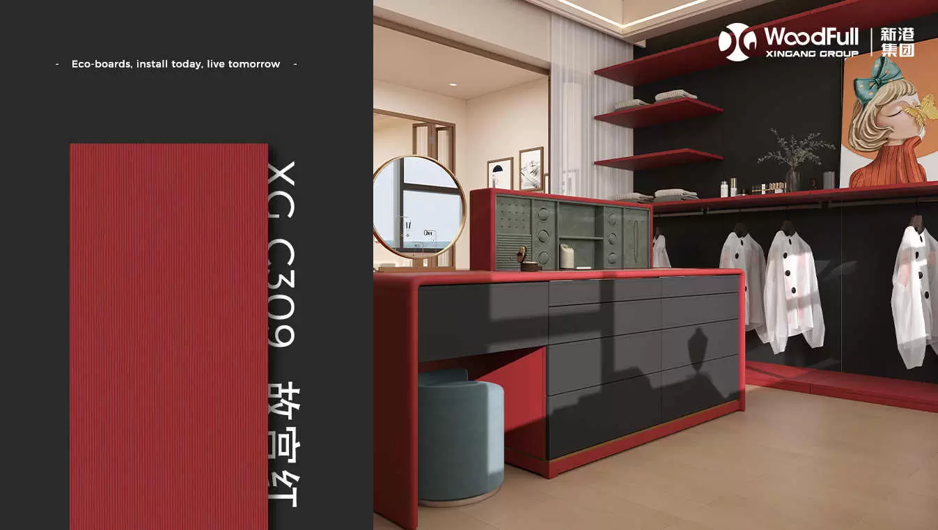 The C309 Red commands attention with its warm, confident vibrancy, perfect for open shelving, display niches, or accent panels that showcase your finest accessories. Balanced against the C308 Dark Grey, a shade of understated depth and modern sophistication, the combination creates a harmonious contrast that feels both dynamic and serene. Together, they define a space that is as bold as it is timeless.