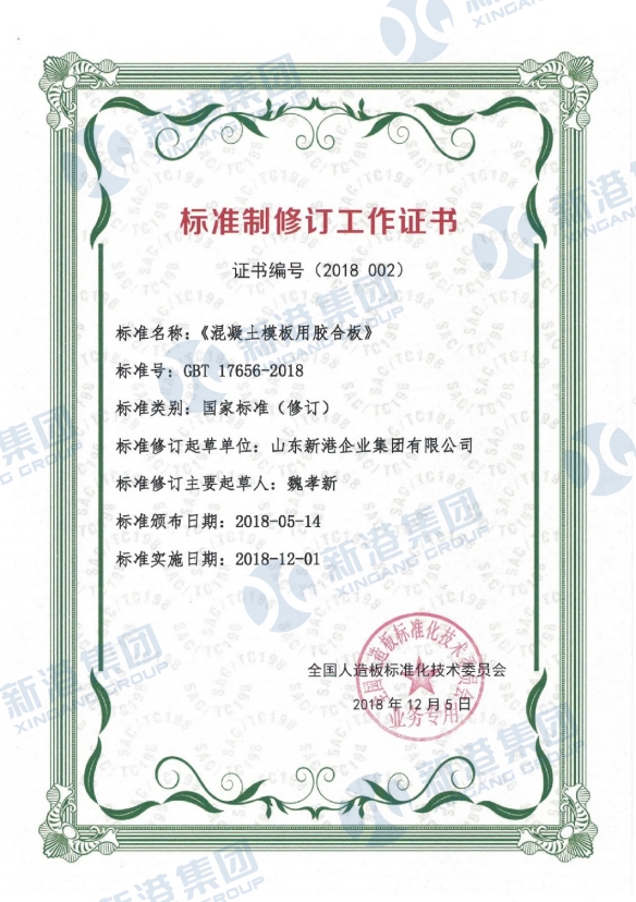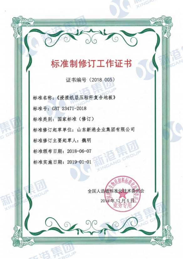 Certificate of Standard Revision Work