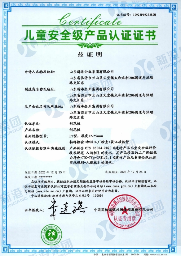 Child Safety Product Certification Certificate
