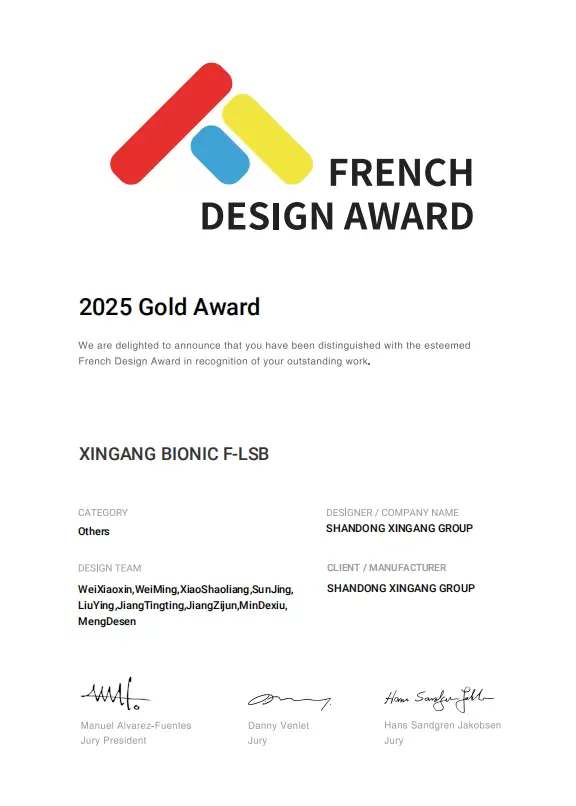 Shandong Xingang Group Co., Ltd., a pioneer in eco-friendly wood-based materials, has proudly won the 2025 French Design Award Gold Award for its innovative product XINGANG BIONIC F-LSB. This prestigious recognition highlights the company’s strong commitment to sustainable development, advanced material technology, and international design excellence.