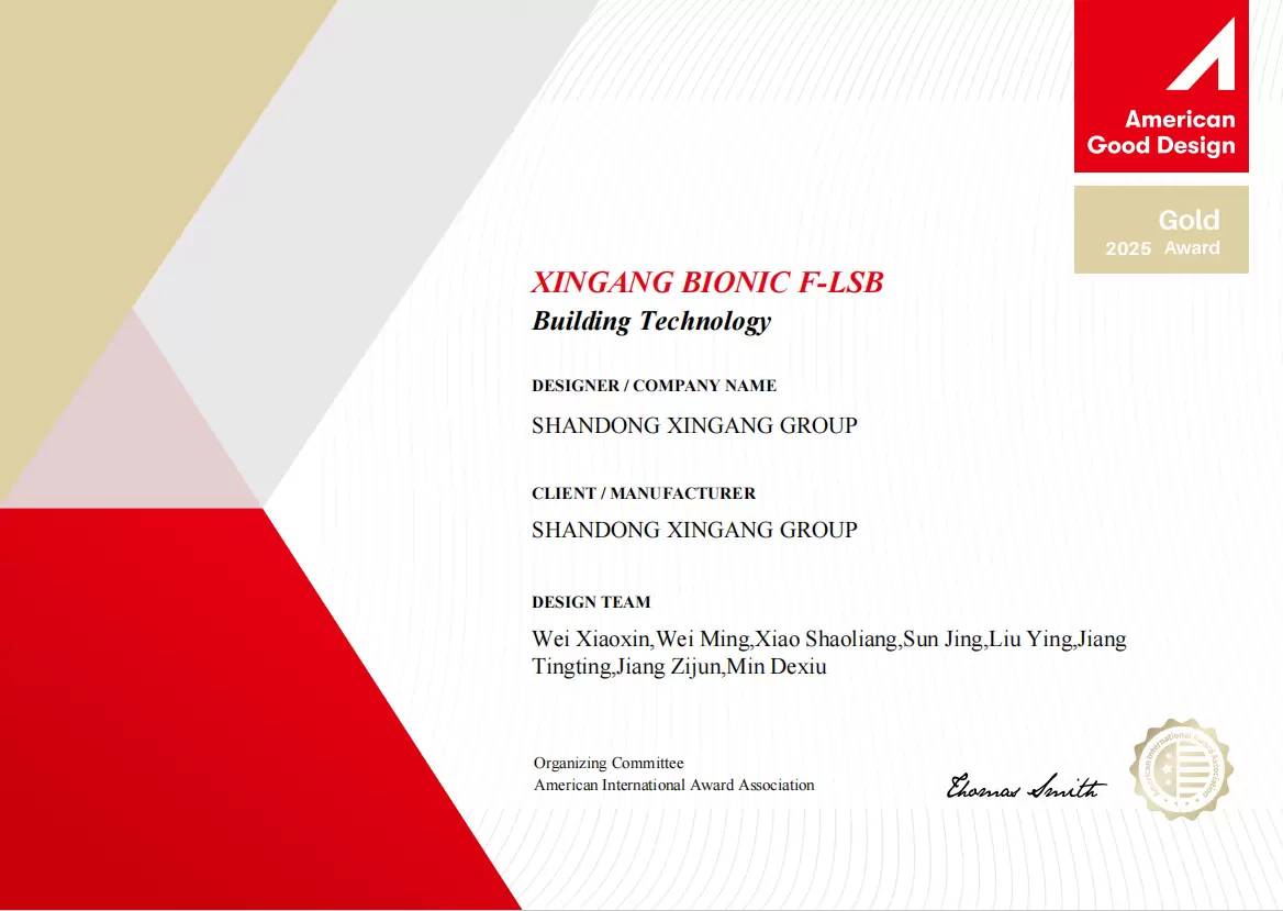 Shandong Xingang Group Co., Ltd. is proud to announce that its innovative product, XINGANG BIONIC F-LSB Building Technology, has been honored with the 2025 American Good Design Gold Award. This prestigious recognition celebrates Xingang’s continuous commitment to sustainability, design excellence, and technological innovation in the wood-based materials industry.